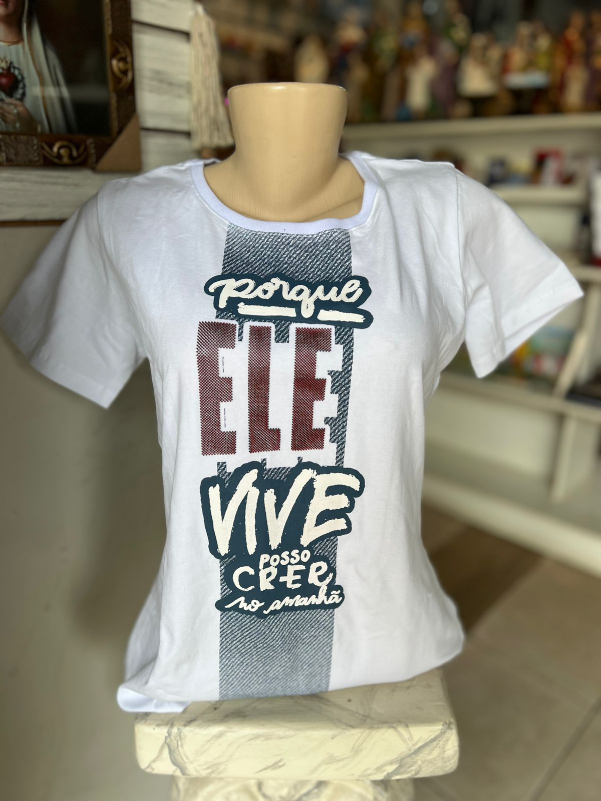 Descrição: Camisa Porque Ele Vive E Posso Crer No Amanhã