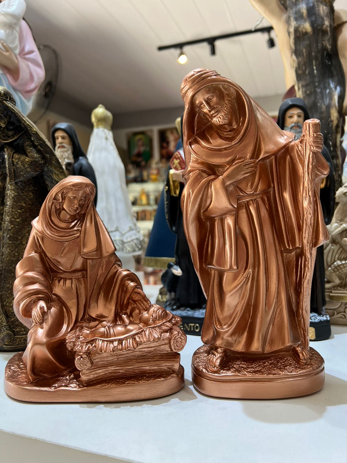 Descrição: Sagrada Família 25cm Gesso Marmorizada 2 Peças